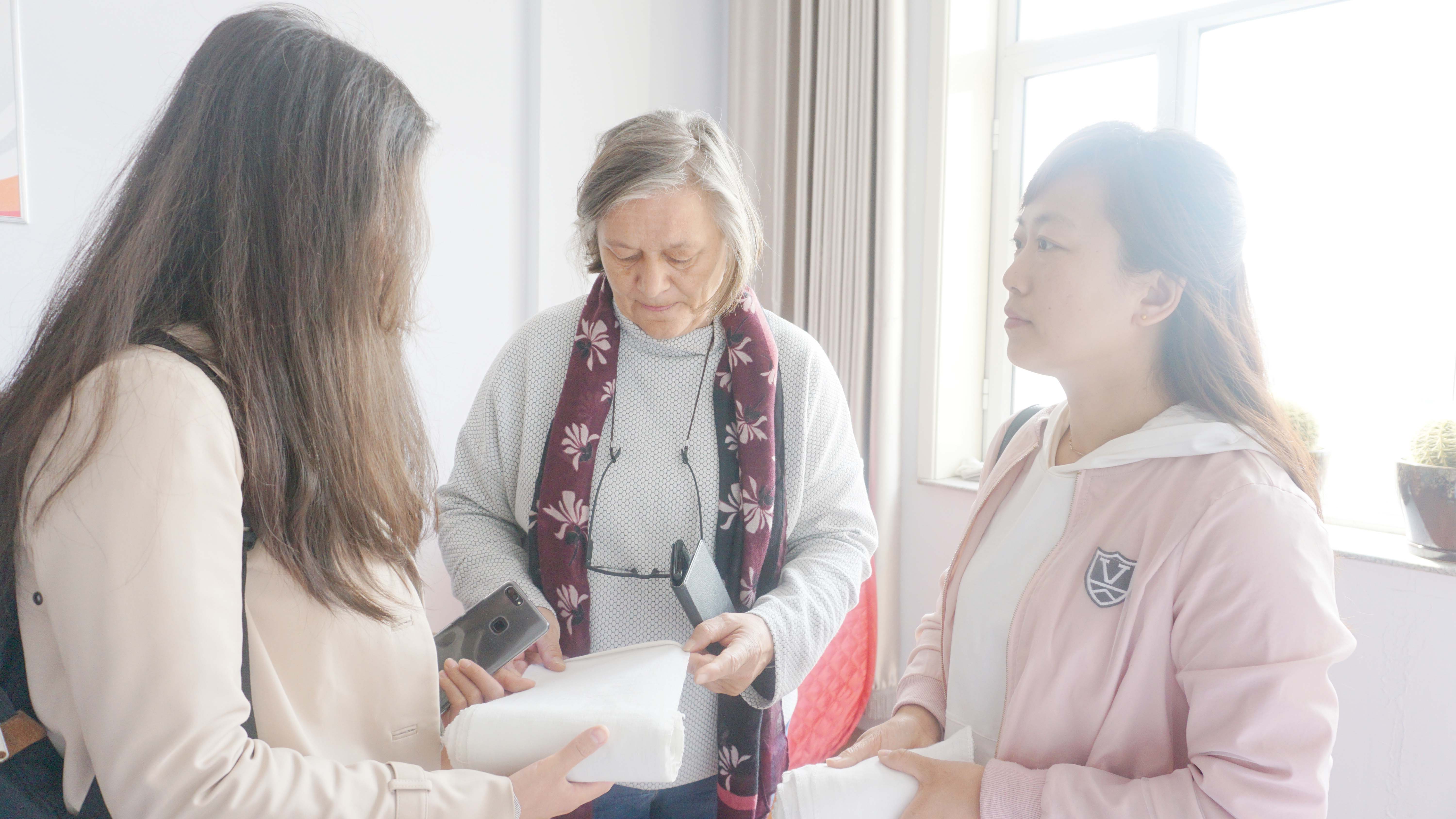 2018年4月20日,德國婦女保健專家郝伊特(Haueter)深入烏蘭美參觀考察,烏蘭美培訓(xùn)部主管聶彥霞、烏蘭美國際母嬰服務(wù)港主管王淑英陪同參觀,酒泉職業(yè)技術(shù)學(xué)院陳瑞老師擔(dān)任翻譯。