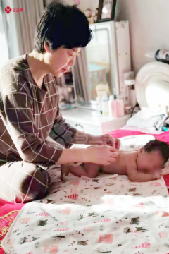△烏蘭美醫(yī)月嫂司素芳正在給寶寶做撫觸