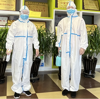 晨檢工作從“七步洗手法”開始,清潔雙手后再次使用酒精進(jìn)行手部消殺,戴好口罩,穿戴好防護(hù)服等一系列防護(hù)裝備迎檢教職工。